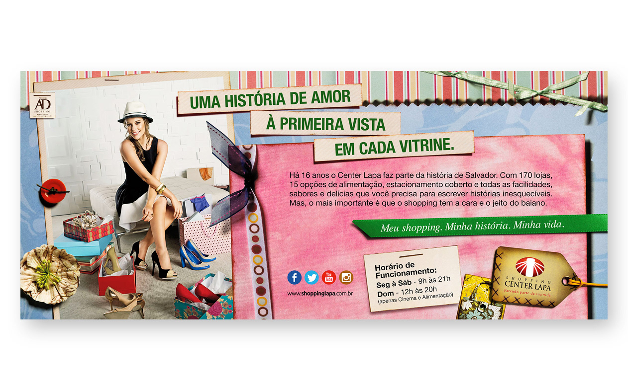 Art Direction Campaign for the 16th anniversary of the Shopping Center Lapa, whose protagonist actress of TV Globo, Paola Oliveira. Art Direction: Chandler Vaz. Copywriter: Ricardo Longo.