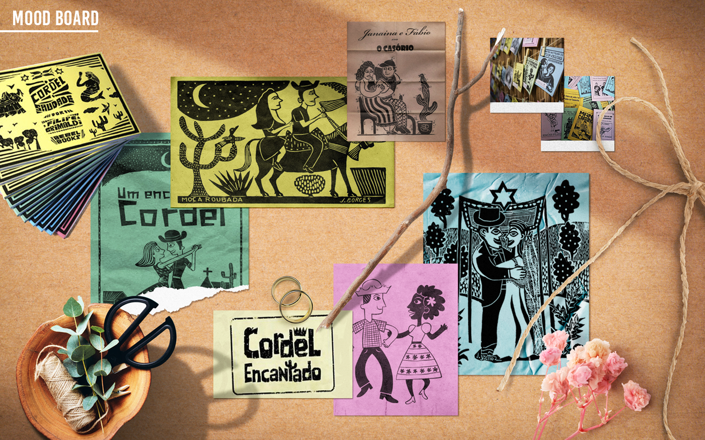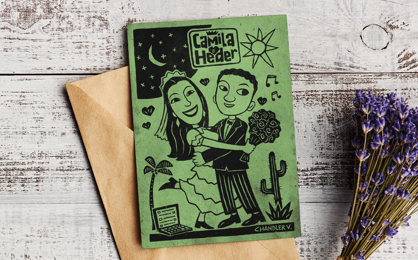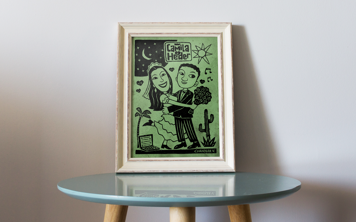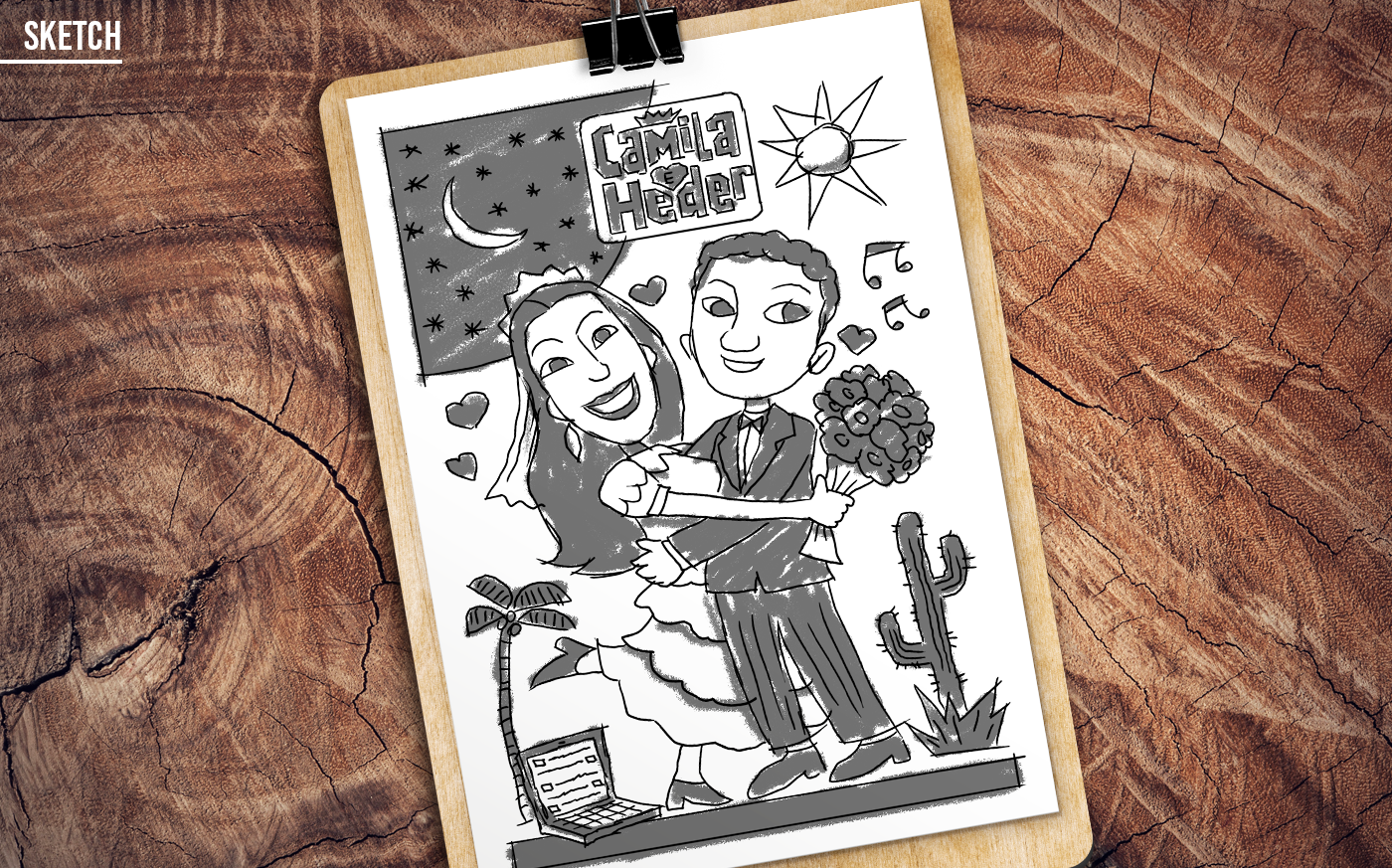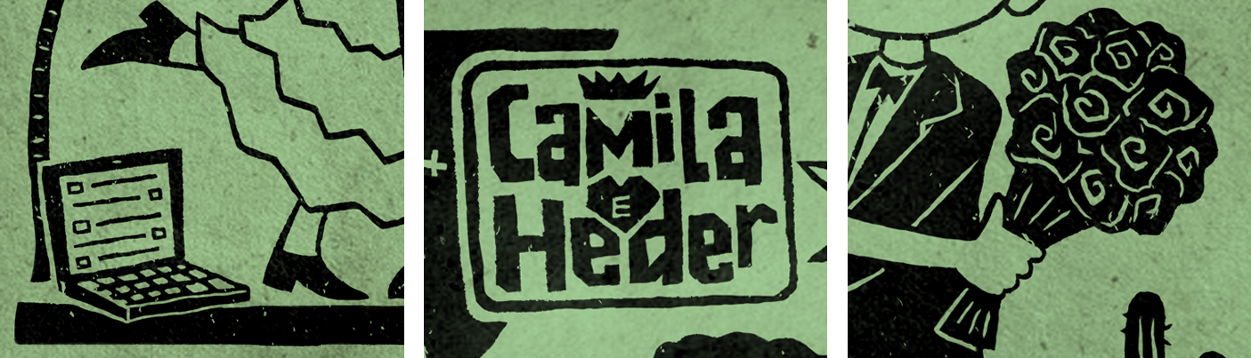 "Cordel" style caricature (woodengraving) for invitation and poster for the wedding of the couple Camila and Heder.