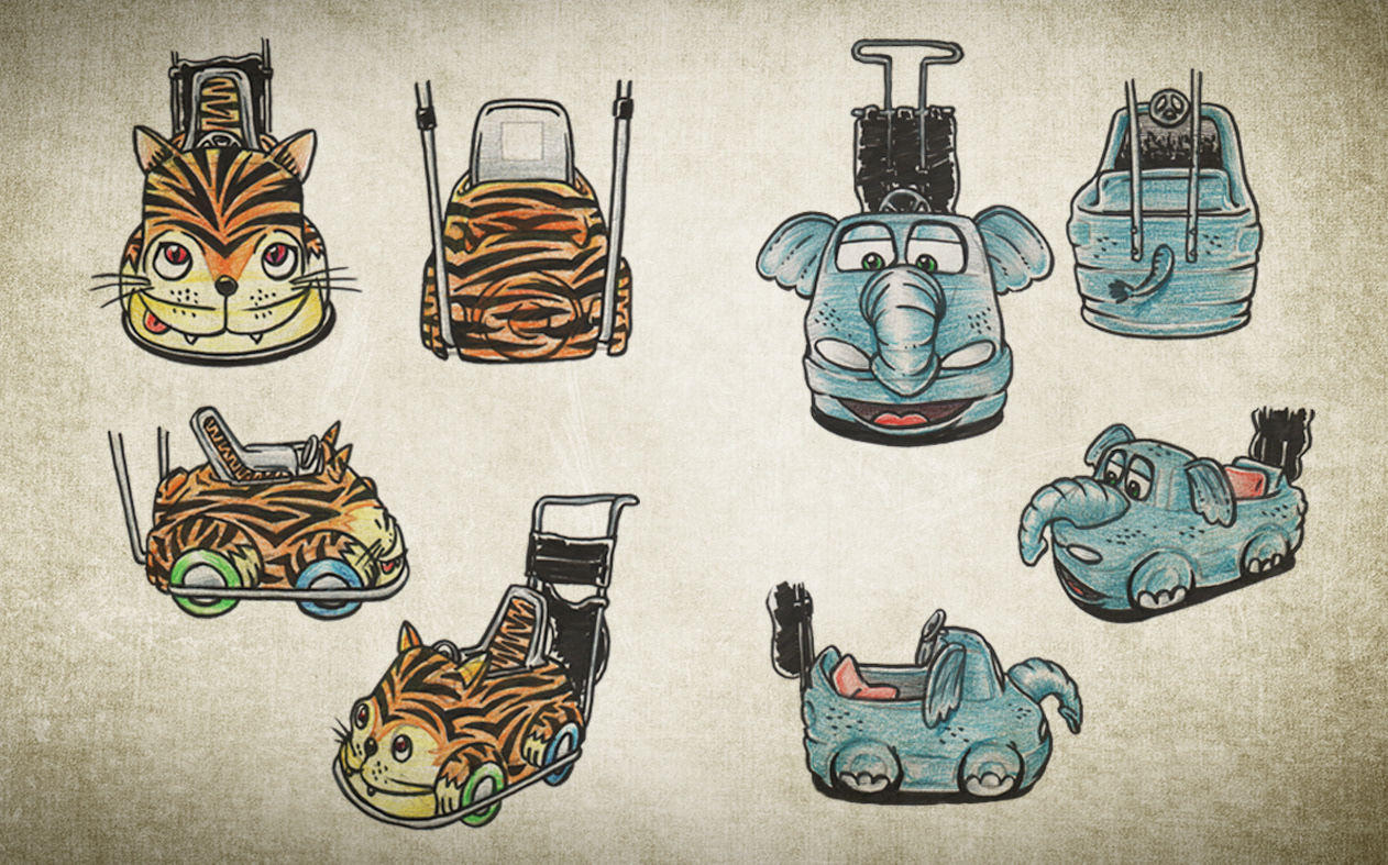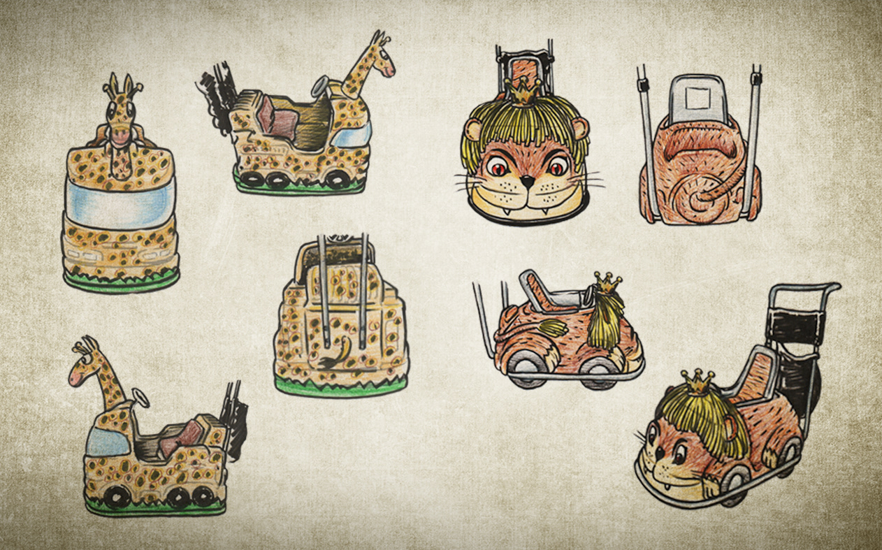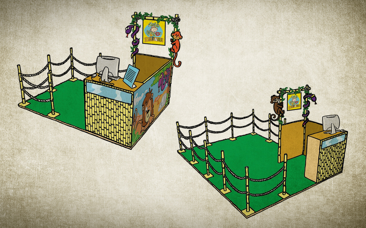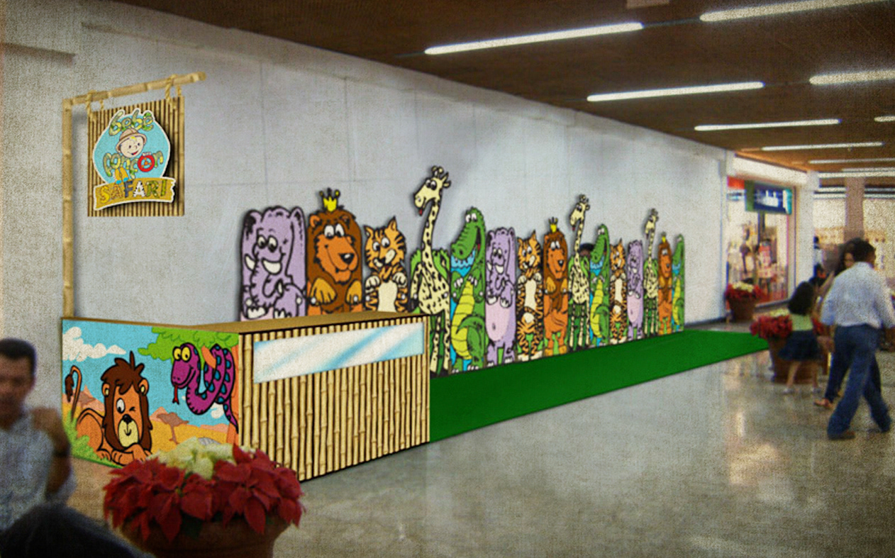 Concepts for the project Baby Fonfon Safari, a stand for baby's strollers at Shopping Iguatemi Salvador to make the ride with the kids even more enjoyable and fun.