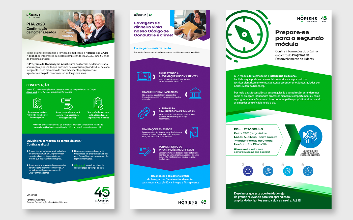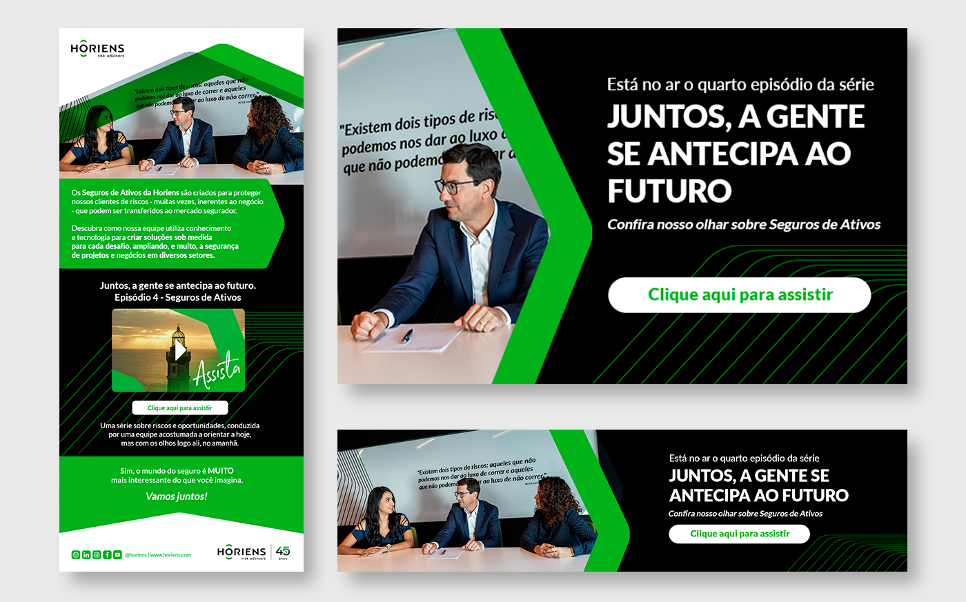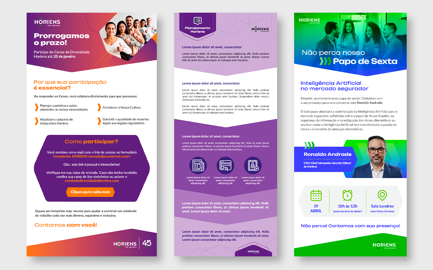 Direção de Arte para Marketing Digital da Horiens - Consultoria e Corretora de Seguros - Cliente: Jota3W Comunicação Digital
