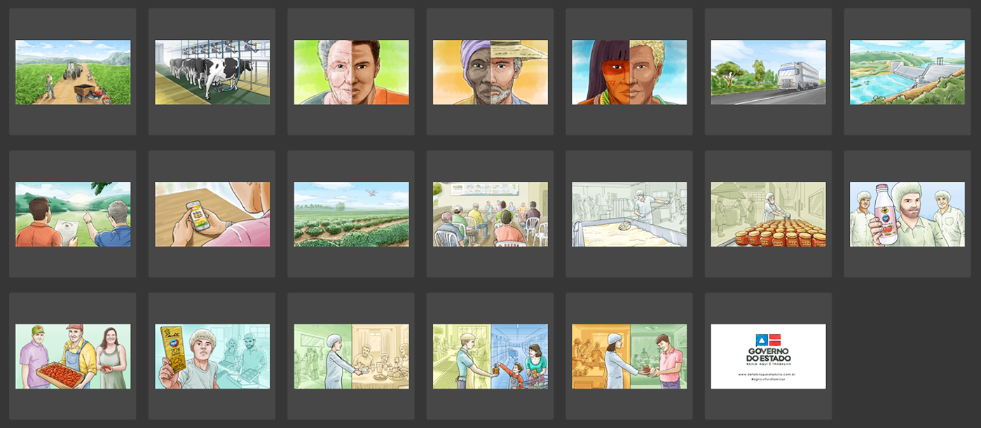 Storyboard for the Family Farming Program TV Campaign of the Government of the state of Bahia, Brazil.