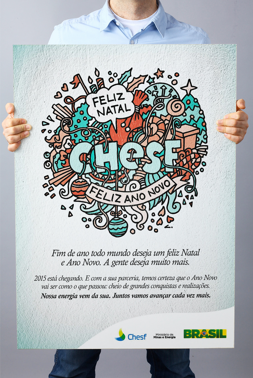Illustration and Art Direction for Christmas and Happy New Year Cards parties for customers and employees in 2014. Art Director: Chandler Vaz . Illustration: Chandler Vaz . Writing: William Caccicco . Creative Direction : Bruno Cartaxo.