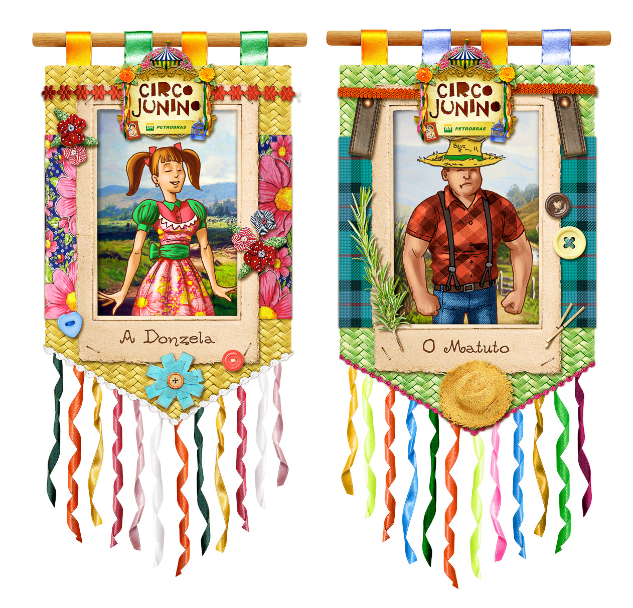 Illustrations, conceptual design and art direction for the Petrobras' São João Project in several municipalities in the state of Bahia.