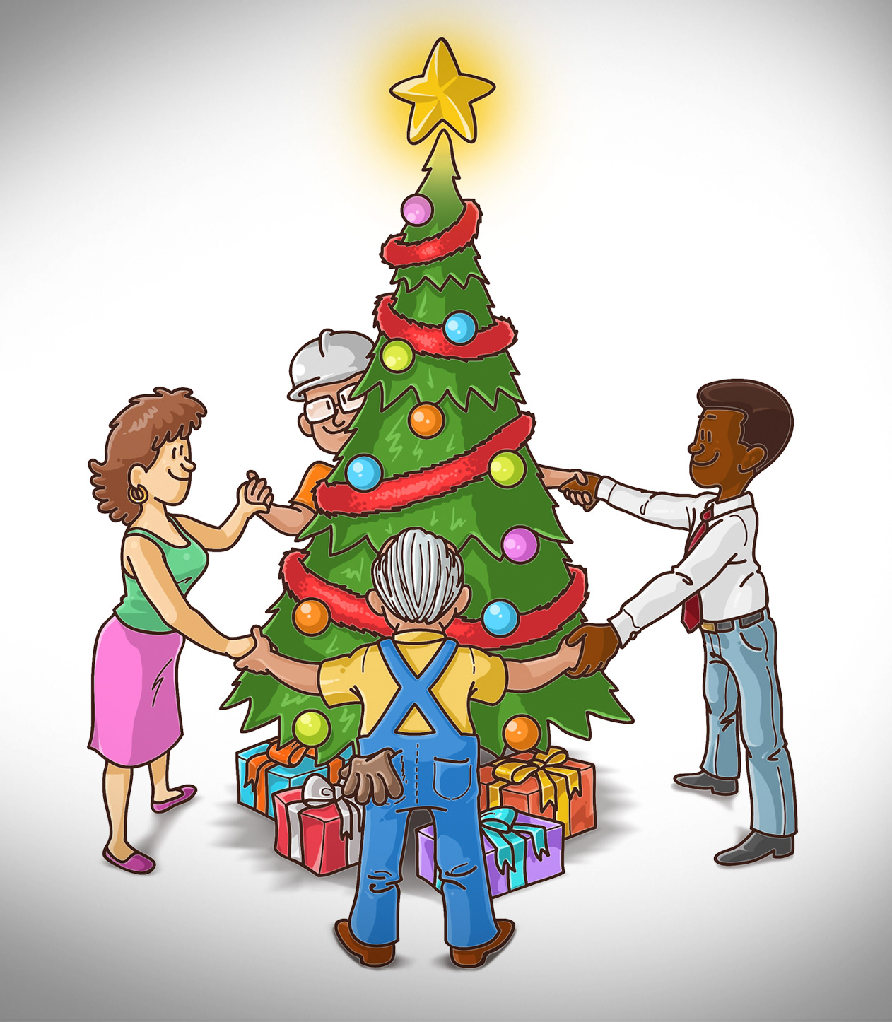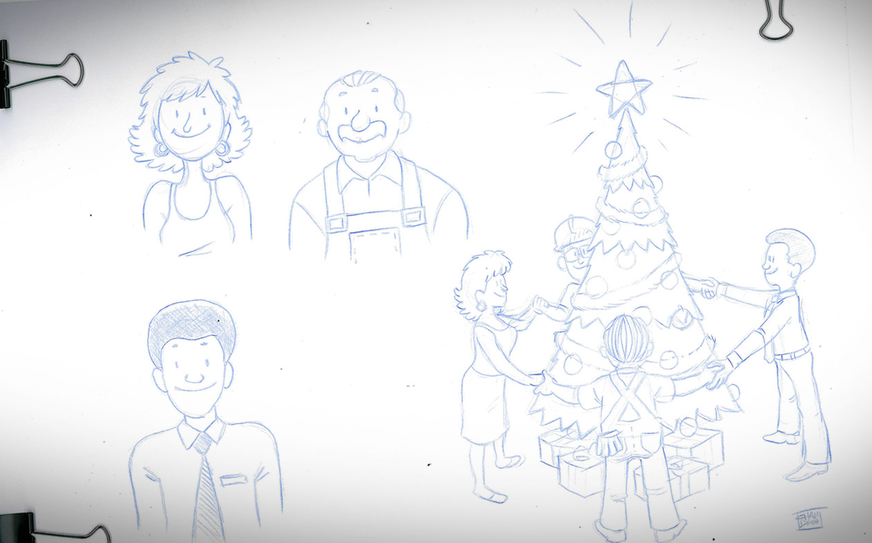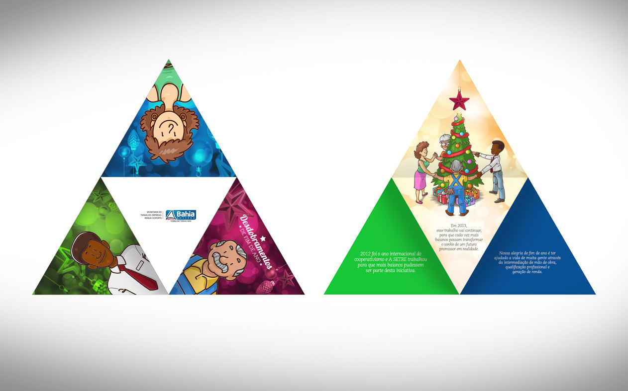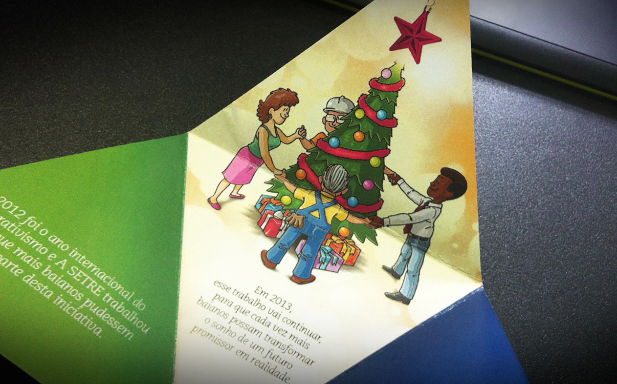 Illustration for Christmas card from the Department of Labor, Employment, Income and Sports of the Government of Bahia state. Illustration: Chandler Vaz. Art Direction: Douglas Reis.