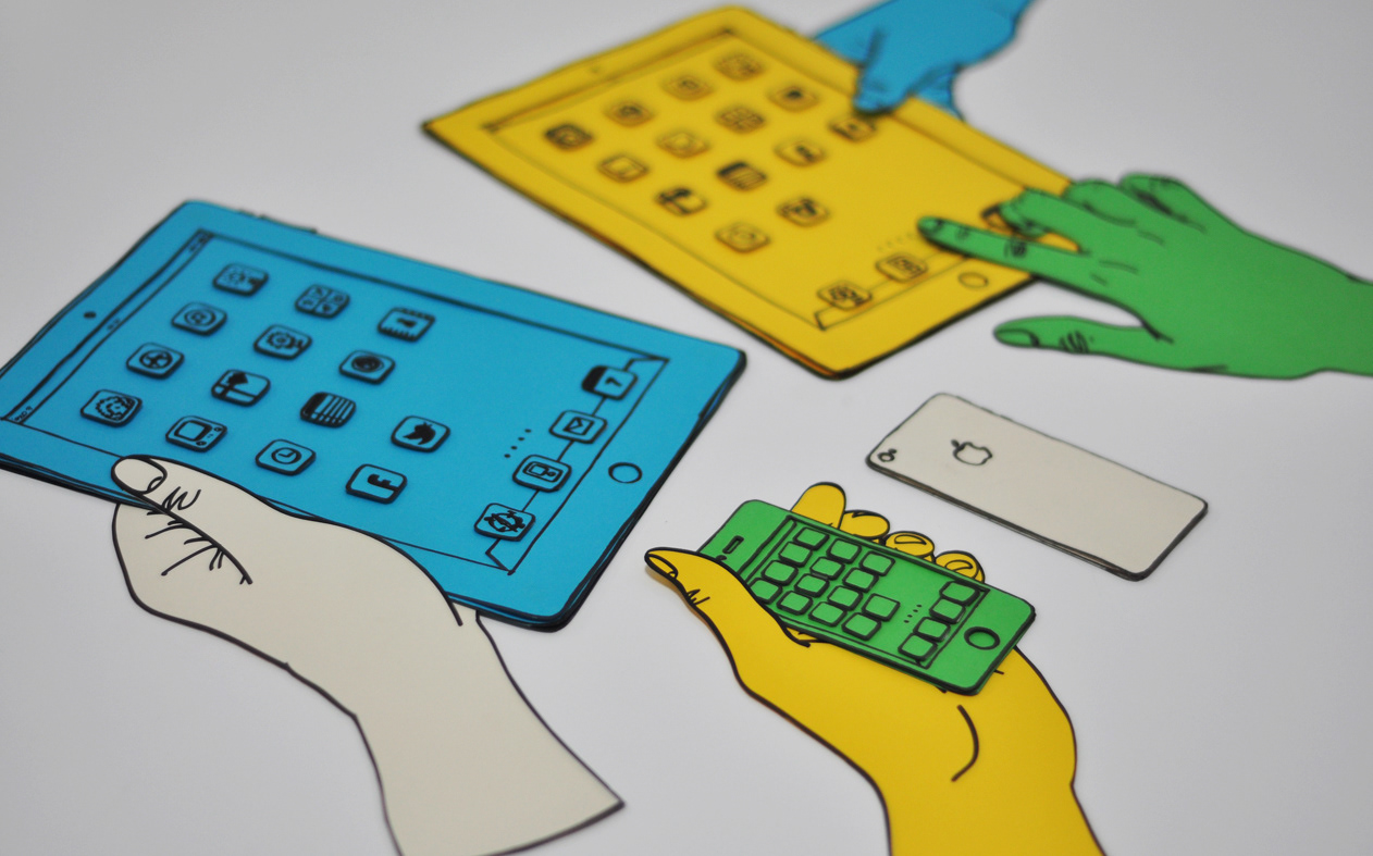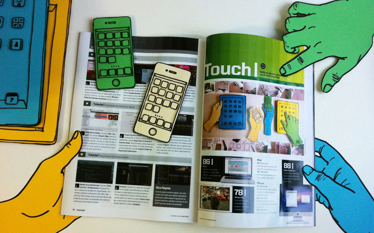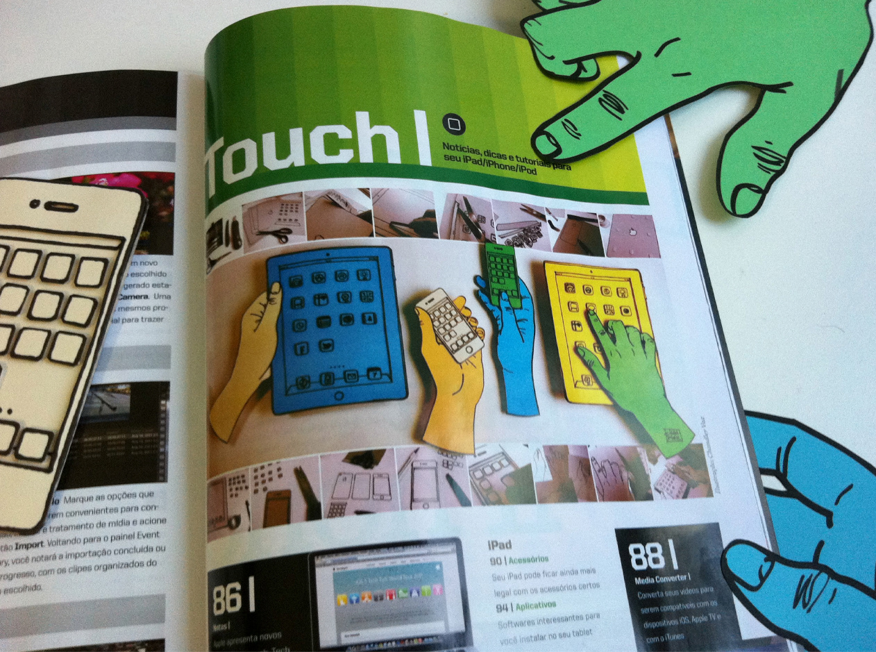 Illustration make with markers and cutted colored paper, and assembled to compose an image for the Touch session of Mac+ Magazine # 066.