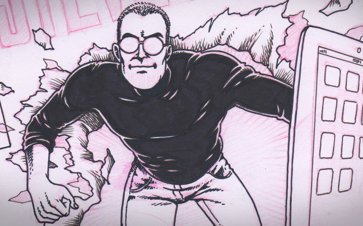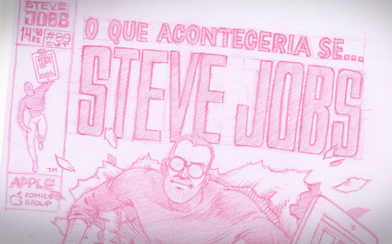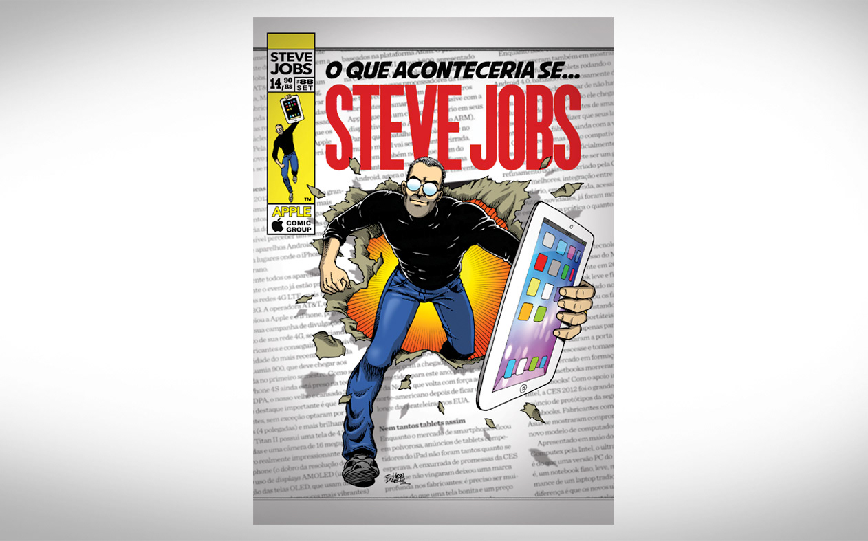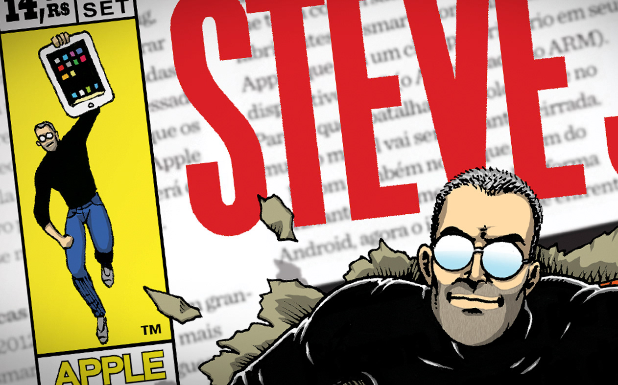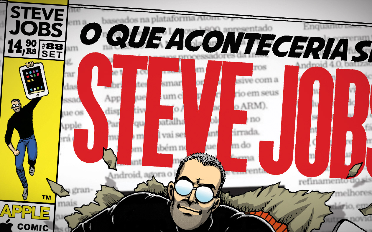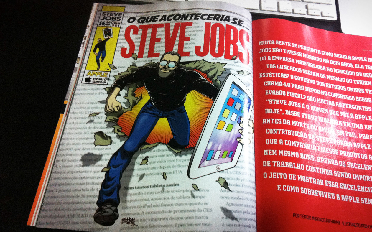 Themed illustration for the full page of #85 edition of Mac+ Magazine in tribute to Steve Jobs.