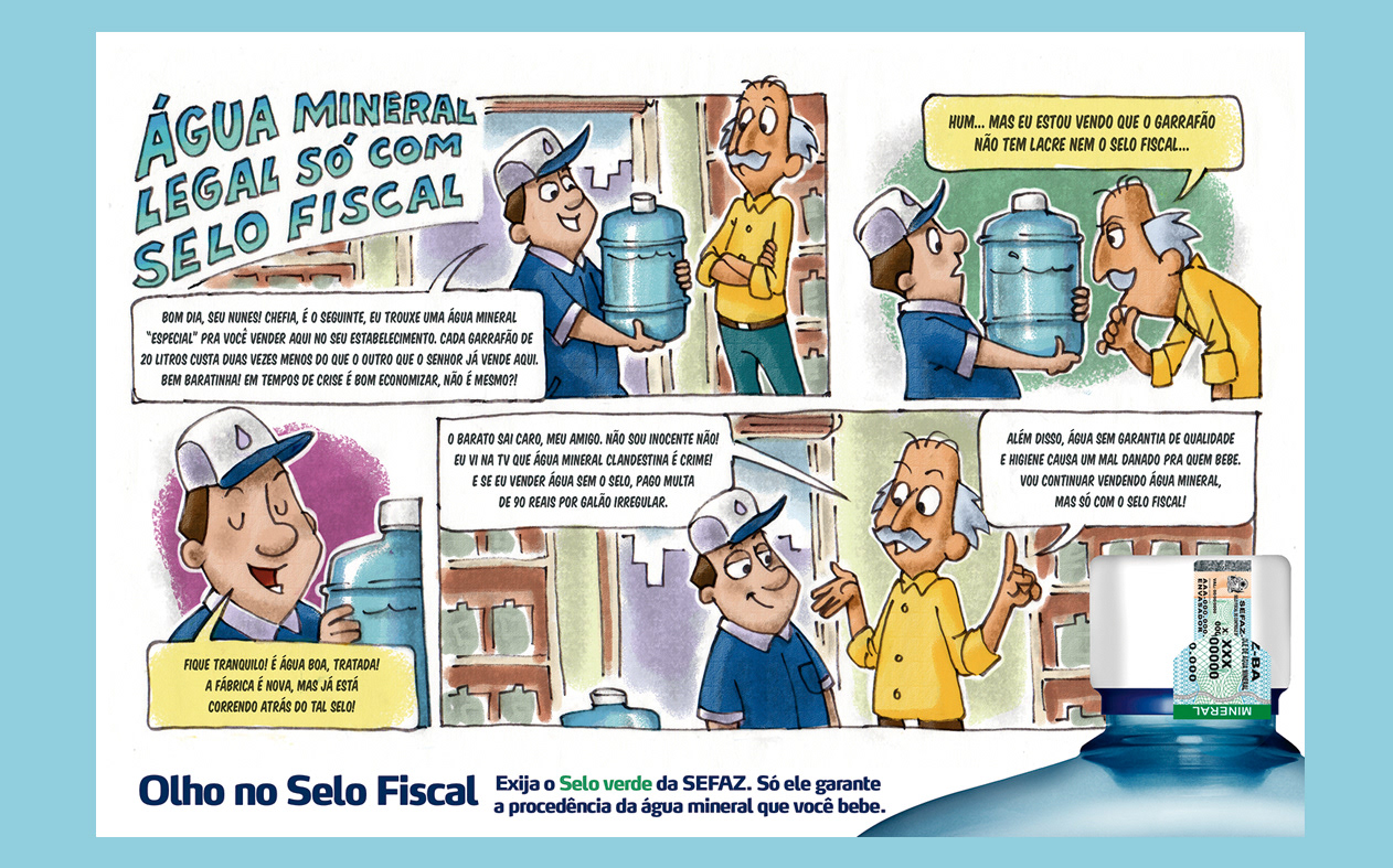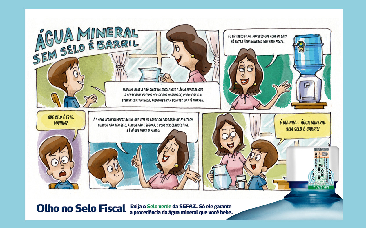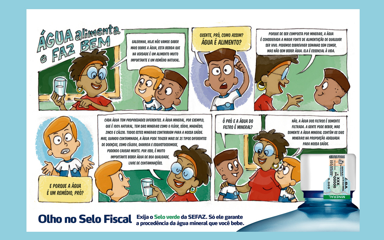 Illustrations and edition of advertisement and brochure - Mineral Water Campaign. SEFAZ / BA