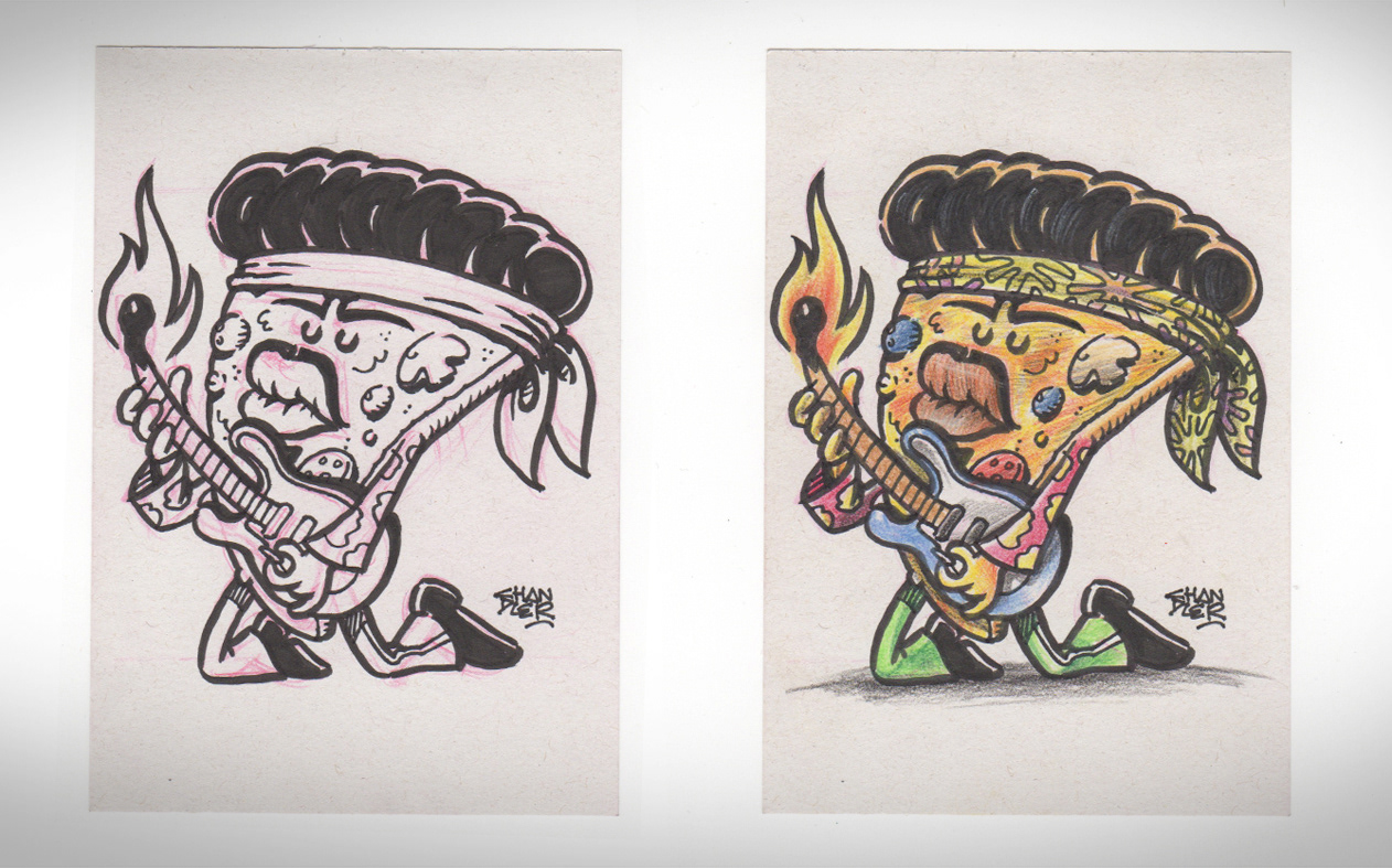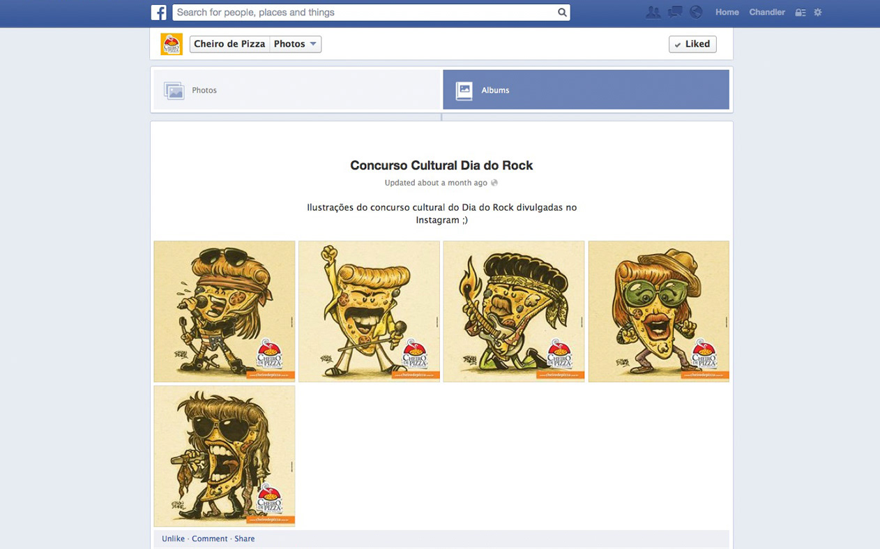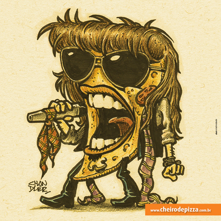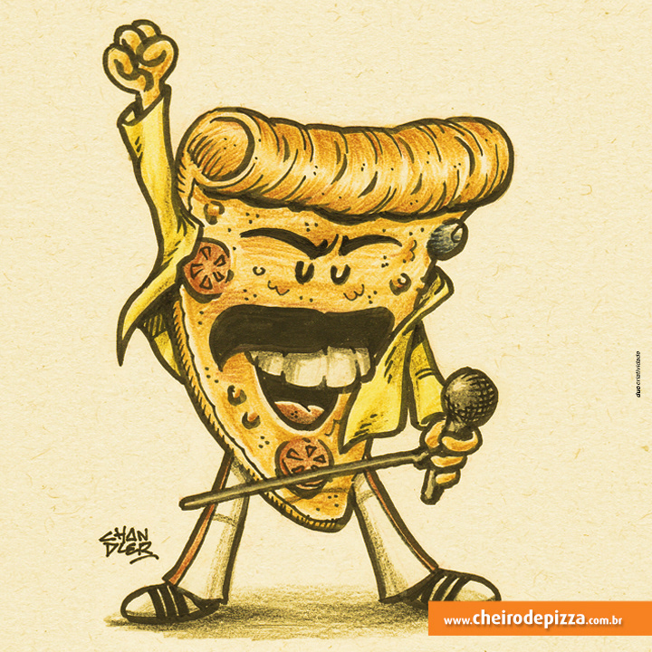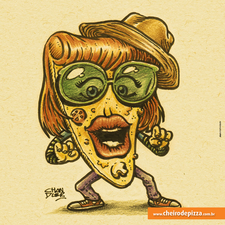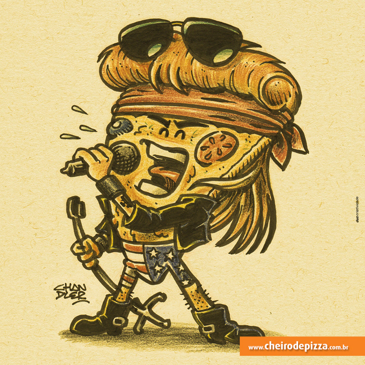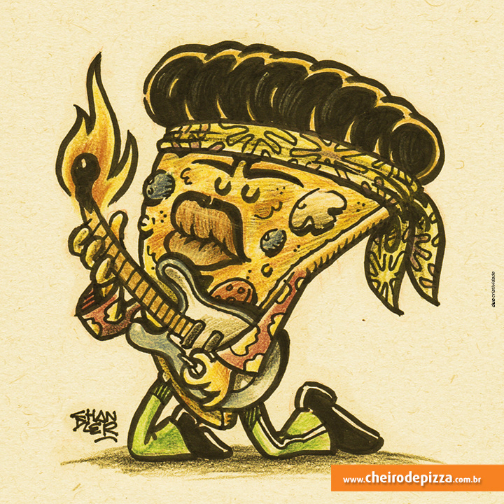 Thematic illustrations to Cheiro de Pizza to promote the social networks of the World Day of Rock.