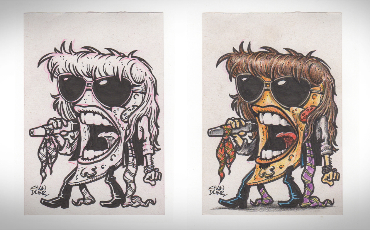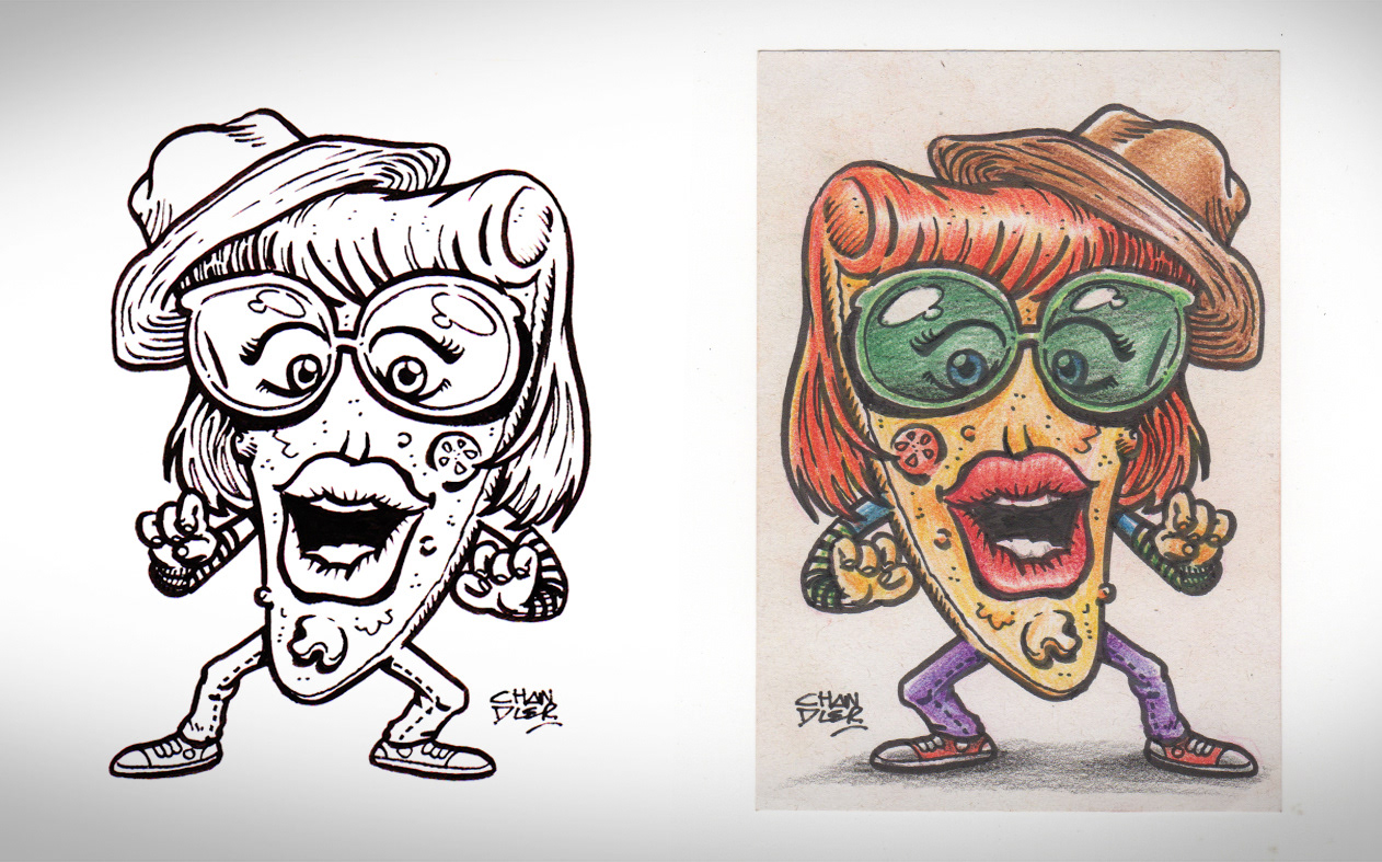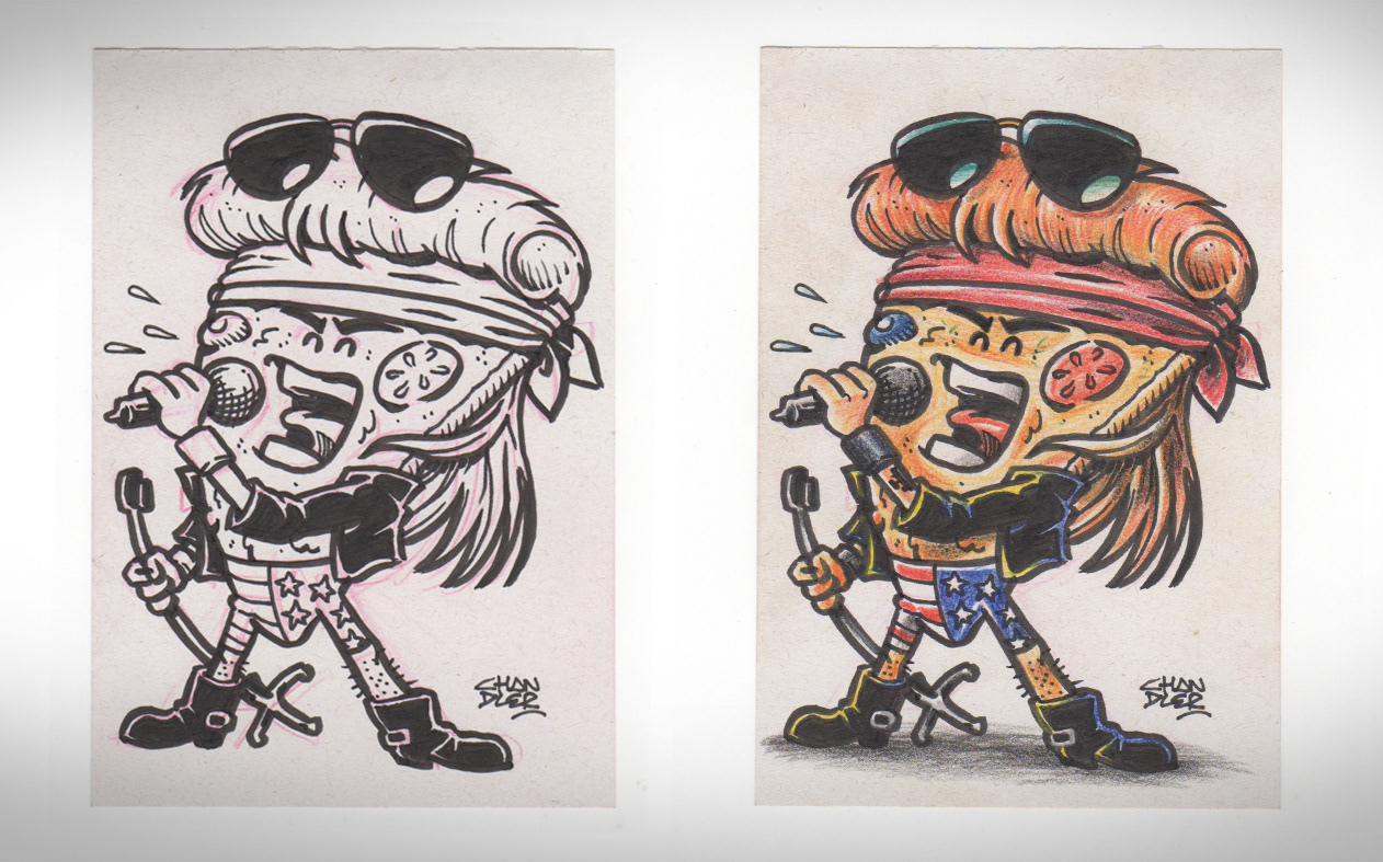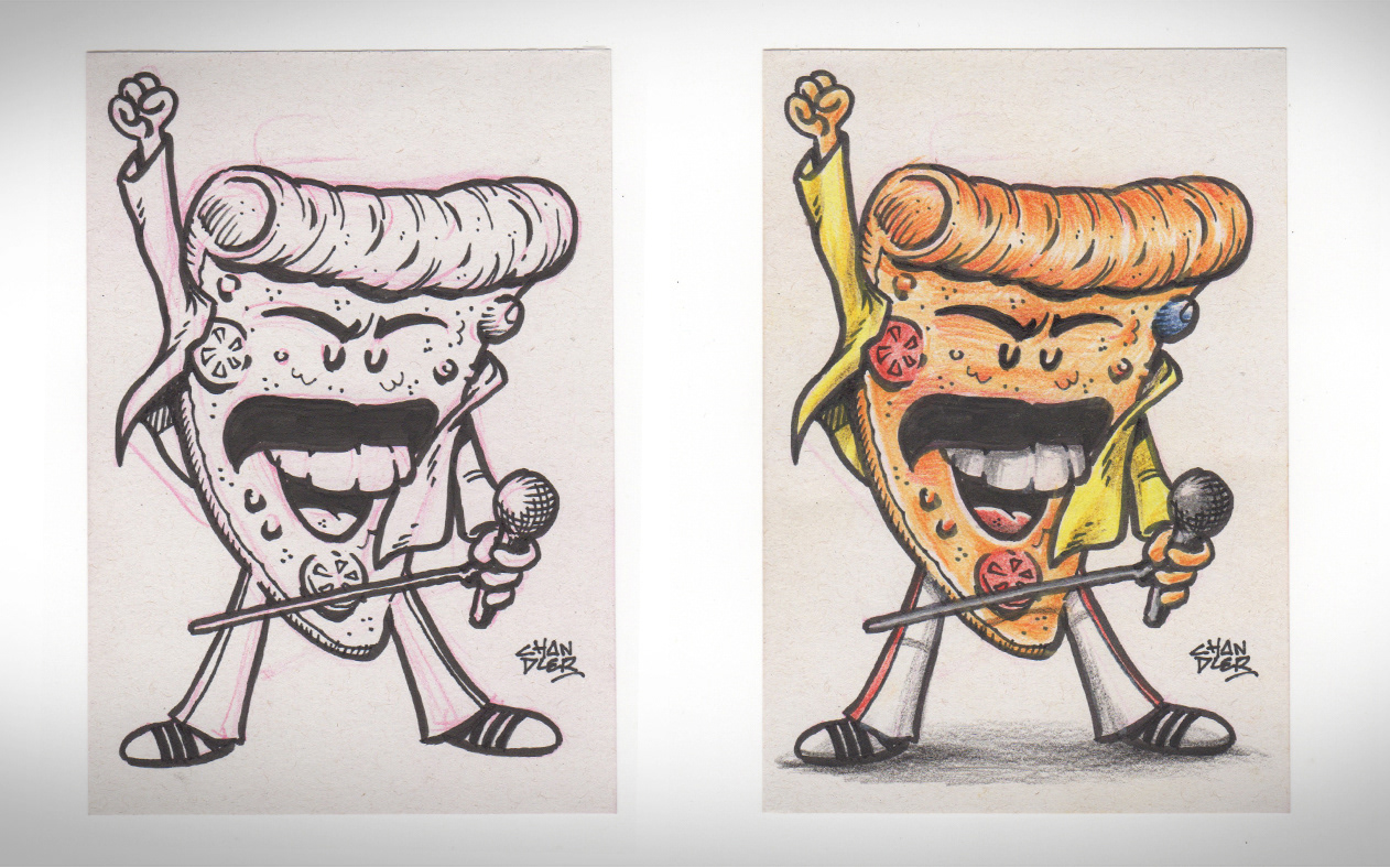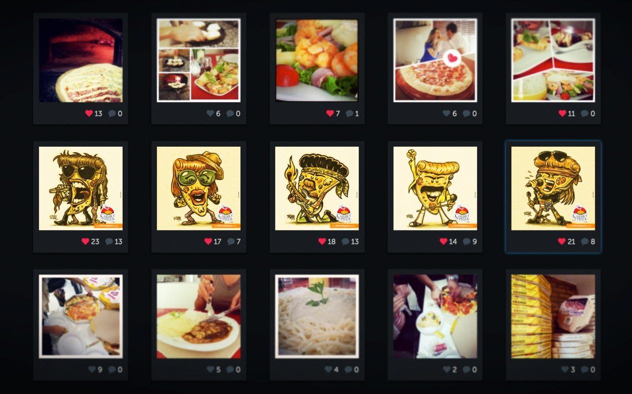 Thematic illustrations to Cheiro de Pizza to promote the social networks of the World Day of Rock.
