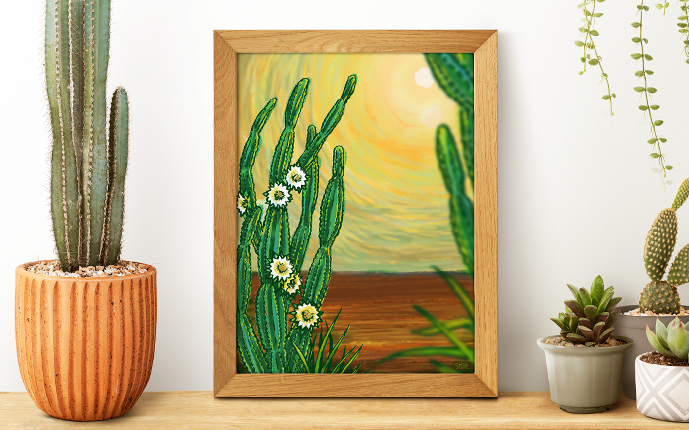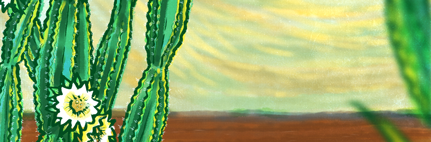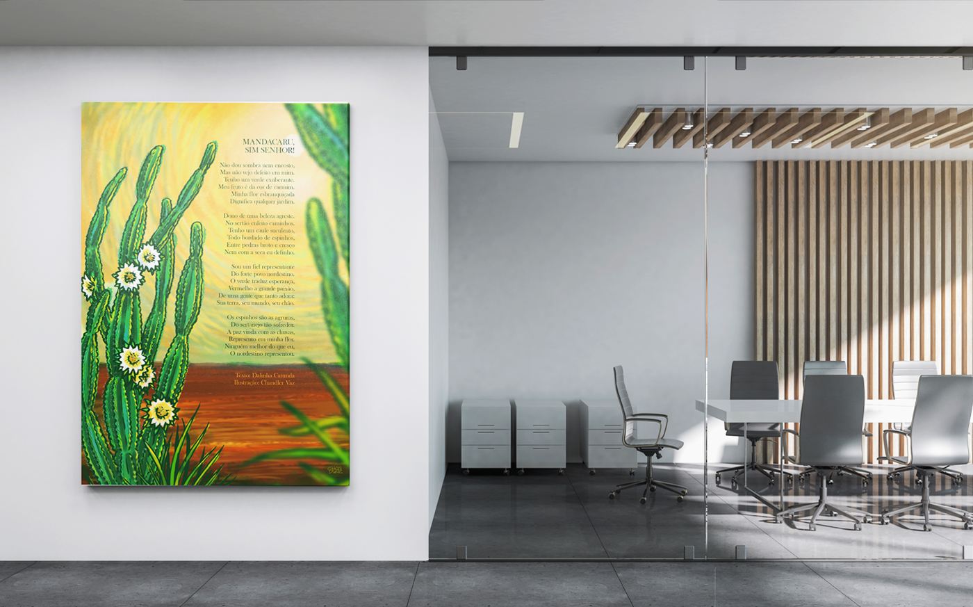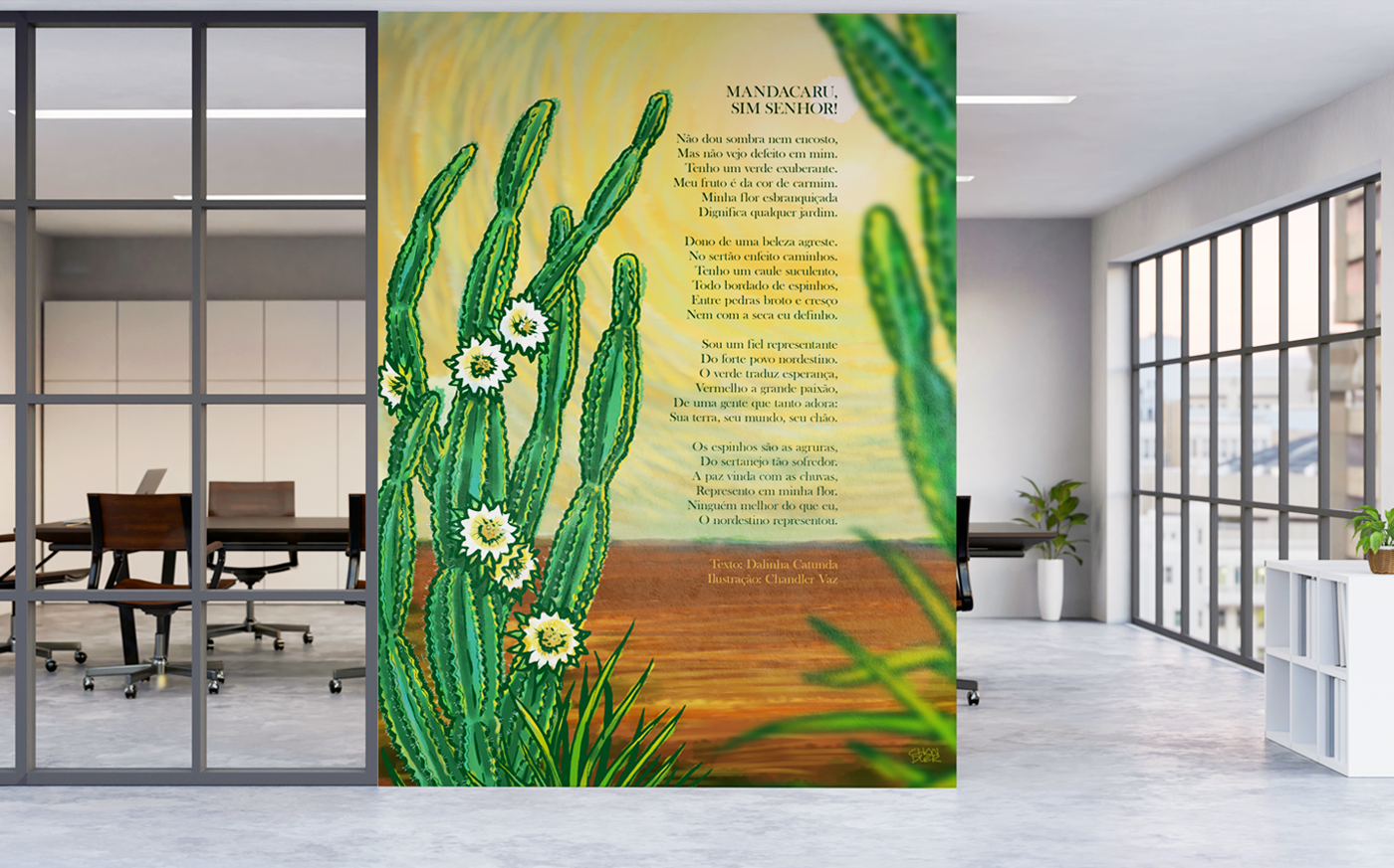 Illustration titled "Mandacaru" - vegetation typical of northeastern Brazil - for editorial use and decoration of physical space in an advertising agency.