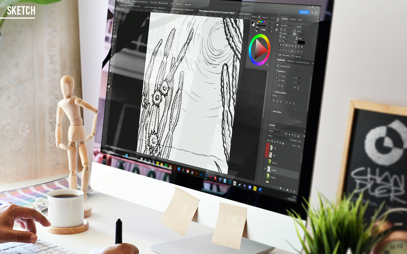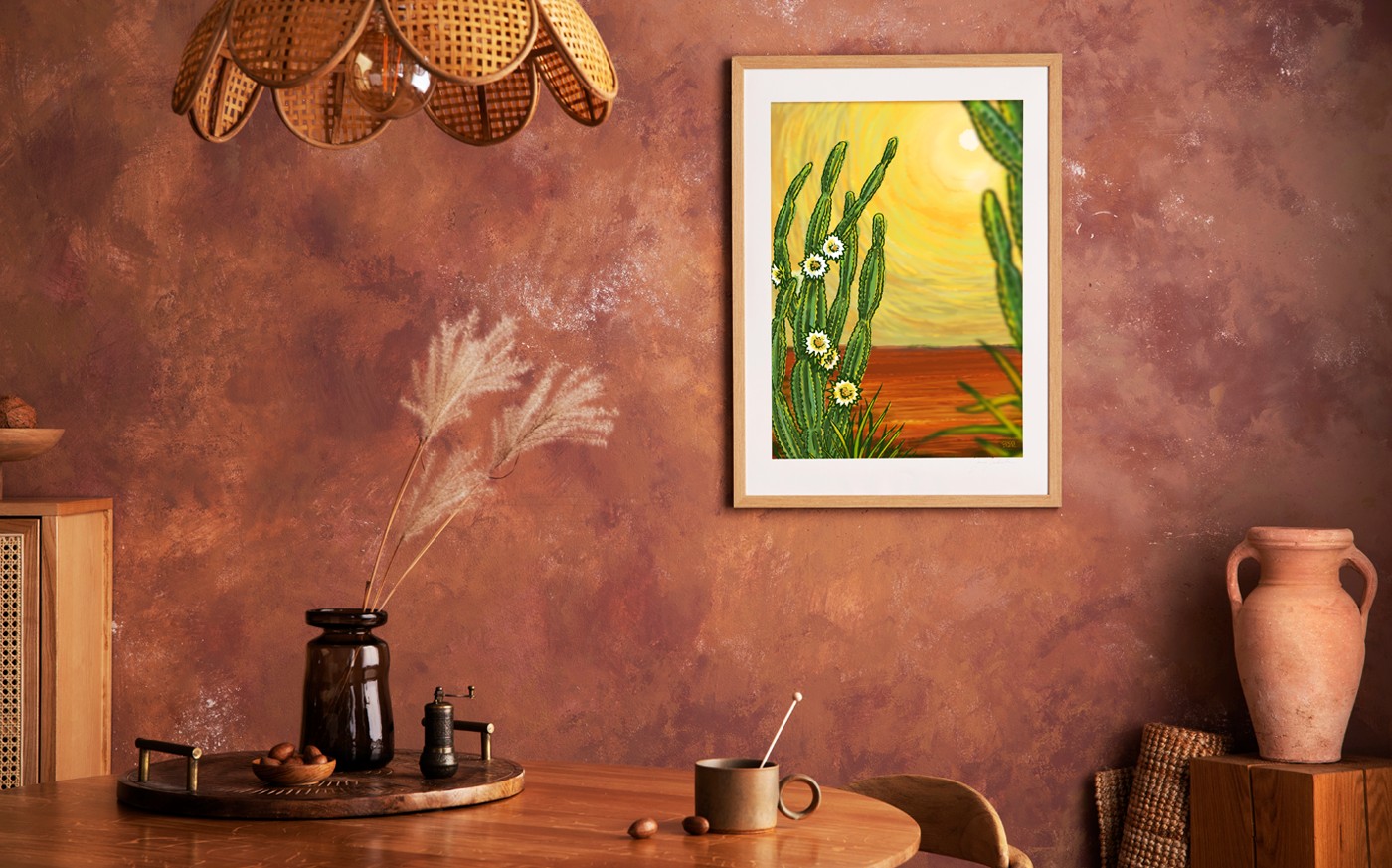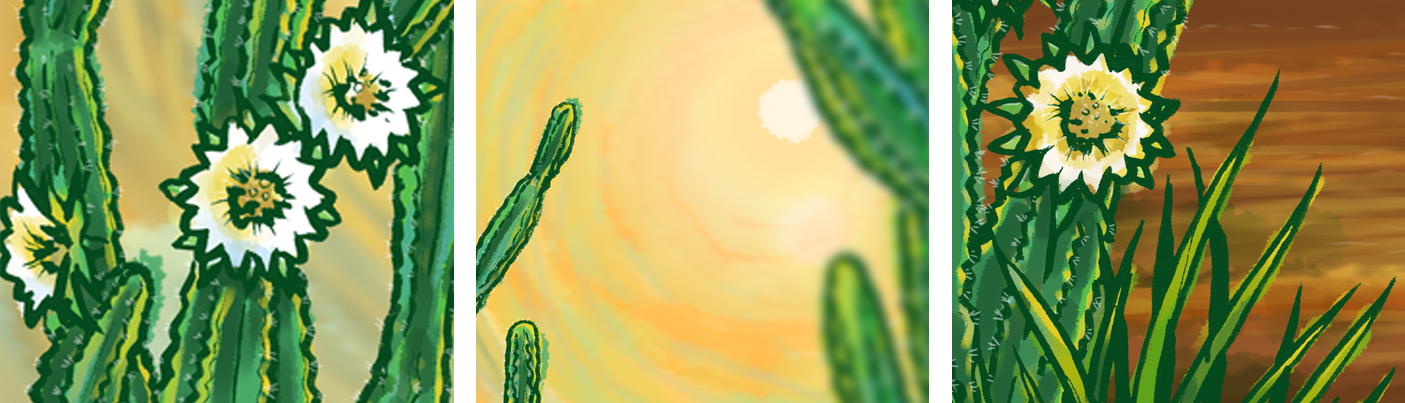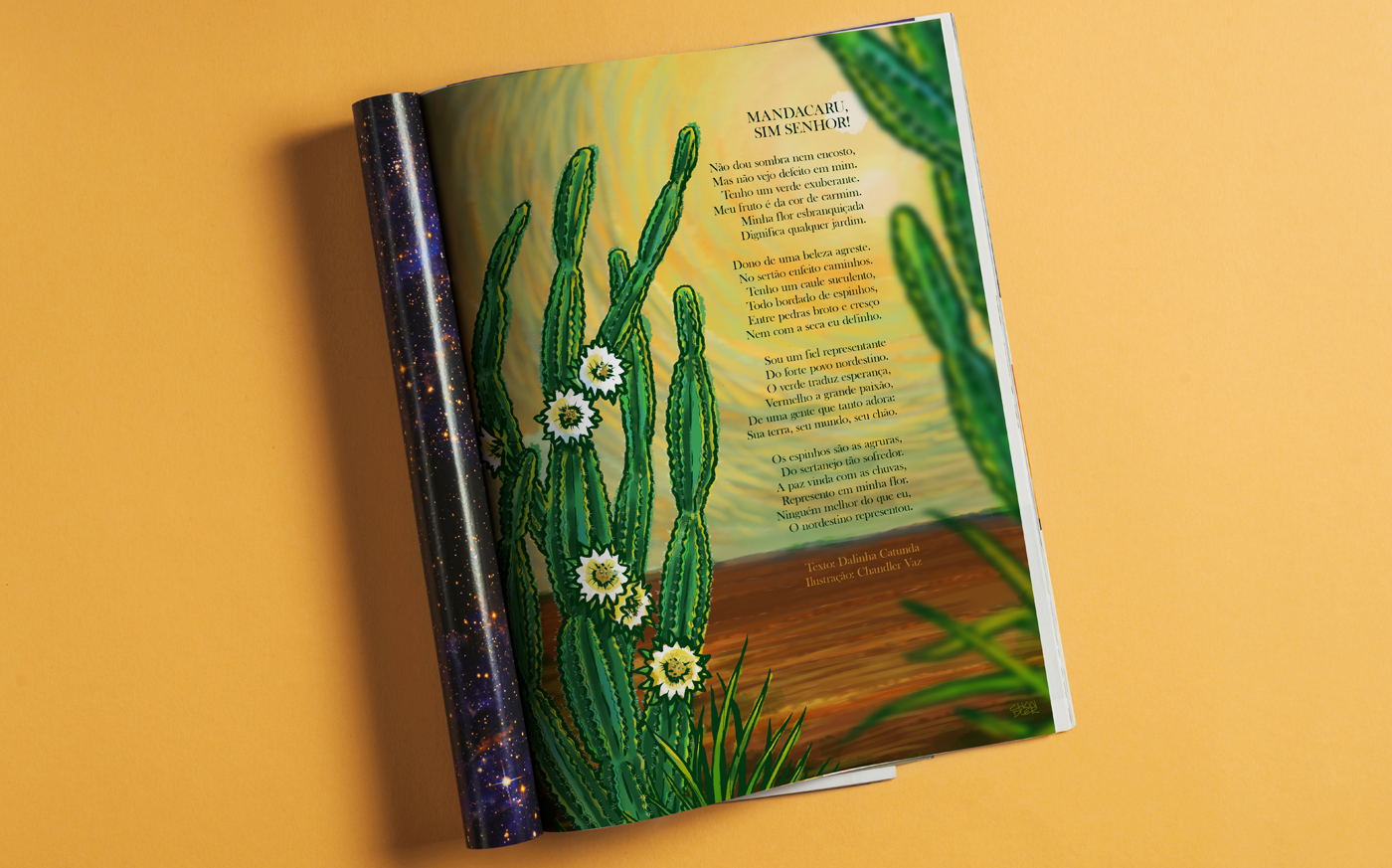 Illustration titled "Mandacaru" - vegetation typical of northeastern Brazil - for editorial use and decoration of physical space in an advertising agency.